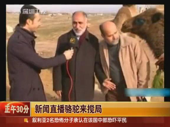 實(shí)拍國(guó)外電視新聞直播中駱駝攪局