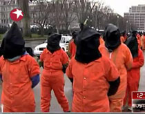 美示威者扮囚犯要求政府關(guān)閉關(guān)塔那摩監(jiān)獄