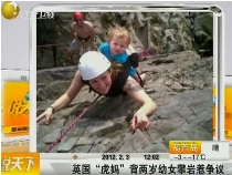 英國“虎媽”背兩歲幼女攀巖惹爭議