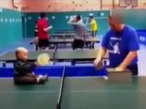 英國年僅1歲半寶寶坐球臺(tái)上練乒乓走紅