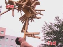 重慶農(nóng)民“鐵齒銅牙” 用牙頂起23條板凳