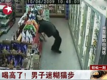 醉酒男子走貓步 歪歪扭扭很消魂