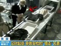實(shí)拍:美男子見財(cái)起意 安檢時“順走”名表