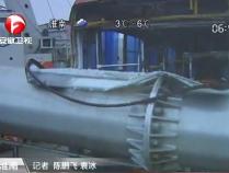 電線桿高空墜落 砸中公交車(chē)