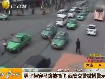 男子橫穿馬路被撞飛 西安交警微博警示