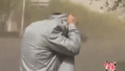 美女主持人直播球賽 被足球砸中腦袋