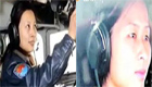 實拍時髦女坐機(jī)箱蓋 公交司機(jī)駕駛途中忙聊天