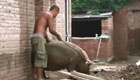 牛人練舉重 用汽車當杠鈴