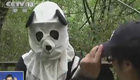臥龍工作人員穿熊貓服放歸大熊貓