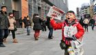南京"裸跑弟"地鐵口賣報