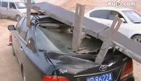 拍客:“天降”鐵塊壓扁轎車