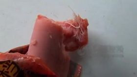 市民曝雙匯火腿腸里吃出雞毛