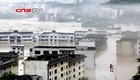 四川成都暴雨 鐵駁船“卡殼”寶成鐵路橋
