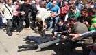 實拍:女工掉下腳架遭鋼筋刺腿穿身