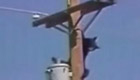 實拍黑熊爬電線桿觸電 瞬間變火球墜落