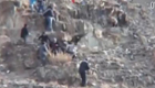 牛人開挖掘機下陡峭山坡