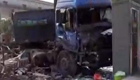 瞌睡司機撞塌收費站大門