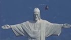 實拍翼裝飛行運動員編隊飛躍里約基督像