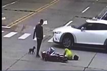 實(shí)拍奔馳女司機(jī)高速急剎車(chē) 引大掛車(chē)猛撞
