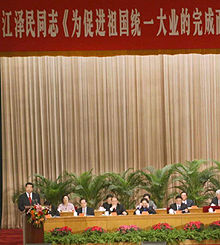 | 今年是江澤民《為促進祖國統(tǒng)一大業(yè)的完成而繼續(xù)奮斗》講話發(fā)表十周年,1月28日下午,北京人民大會堂將舉行一個隆重的紀念活動,中央領導屆時將出席活動并發(fā)表重要講話。
