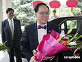圖:曾蔭權(quán)宣誓就職后喜氣洋洋走出人民大會(huì)堂(6月24日15:03)