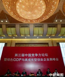 由中國新聞社主辦的第三屆中國競爭力論壇暨綠色GDP與高成長型企業(yè)高峰論壇10日在北京人民大會堂開幕。本次論壇的主題是“倡導(dǎo)‘十一五’綠色成長理念,打造高成長型企業(yè)”。
