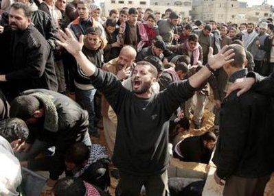 第六日 哈馬斯領(lǐng)導(dǎo)人尼扎爾•拉揚的住所遭到以軍轟炸,他本人及多名家人喪生。這是以軍空襲加沙以來首次炸死哈馬斯高級領(lǐng)導(dǎo)人?偹劳鋈藬(shù)則上升至410人,2000多人受傷。當(dāng)天,以色列國防部公布了“鑄鉛行動”的最新戰(zhàn)報,稱已摧毀了哈馬斯位于加沙的450處據(jù)點,有25處是在新年第一天的襲擊中擊毀的。另外,聯(lián)合國安理會召開會議,就呼吁加沙地帶實現(xiàn)停火的決議草案進行討論,但因英美反對而未獲通過。【詳細(xì)】