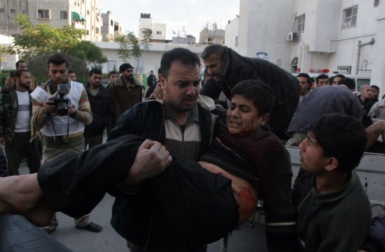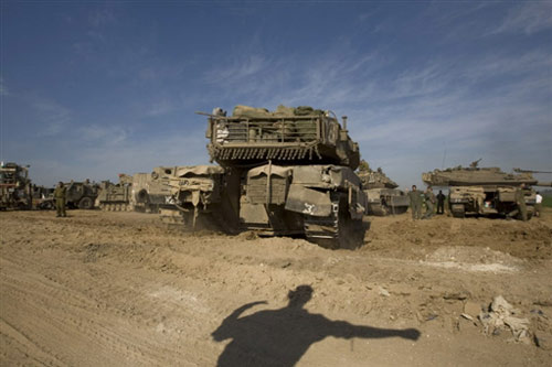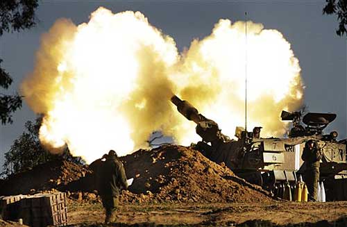 第八日 以色列軍隊3日下午開始對加沙地帶發(fā)動炮擊。這是2008年12月27日以軍開始空襲加沙以來首次進行炮擊。哈馬斯高級指揮官阿爾•賈邁勒在襲擊中喪生,他是第三位在以軍襲擊中喪命的哈馬斯高級指揮官。第二位是哈馬斯下屬武裝派別高級軍事指揮官阿布•扎卡里亞•賈邁勒,他于2日晚在空襲中受傷,3日早因傷勢嚴(yán)重死亡。當(dāng)晚,以色列發(fā)動地面進攻,戰(zhàn)爭全面升級。死亡人數(shù)上升至450人,受傷者達2300人。【詳細(xì)】