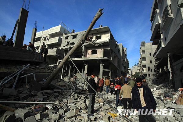 第二十天 以軍15日凌晨攻進加沙城南部,隨后向城中心推進。以軍F16戰(zhàn)機當(dāng)晚炸毀加沙城北部一棟三層住宅樓,炸死包括哈馬斯當(dāng)局內(nèi)政部長在內(nèi)的三名高級領(lǐng)導(dǎo)人。另外,聯(lián)合國近東巴勒斯坦難民救濟和工程處辦公地點當(dāng)天遭到以軍炮擊,加沙城南部的巴勒斯坦紅新月會辦公地點也遭襲。目前以軍行動已造成至少1095人死亡,超過5000人受傷。哈馬斯稱如果以色列在1周內(nèi)撤軍并立即重開加沙口岸,他們愿意實現(xiàn)一年甚至更長的;稹