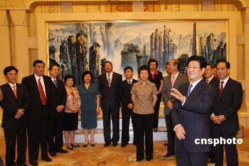 圖:王兆國在人民大會堂接見全國“僑界十杰”