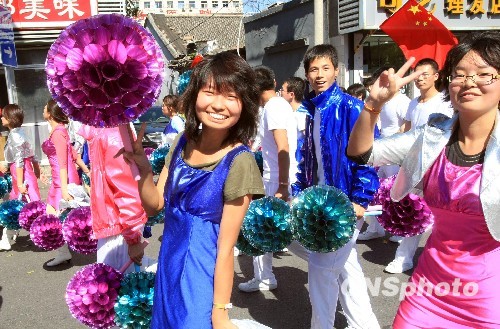 國(guó)慶花絮:參加游行的學(xué)生方隊(duì)