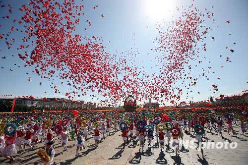 國(guó)慶慶典:“國(guó)徽和國(guó)慶年號(hào)”方陣