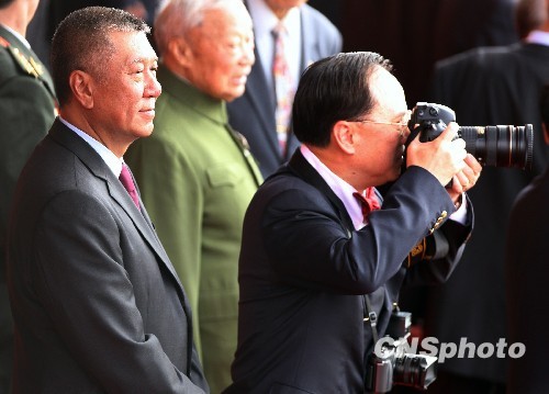 國(guó)慶慶典:曾蔭權(quán)在天安門城樓拍照