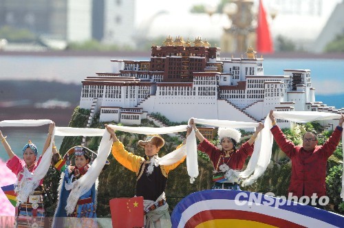 國(guó)慶慶典:西藏彩車亮相群眾游行隊(duì)伍