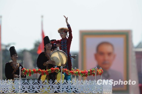 國(guó)慶慶典:新疆彩車亮相群眾游行隊(duì)伍