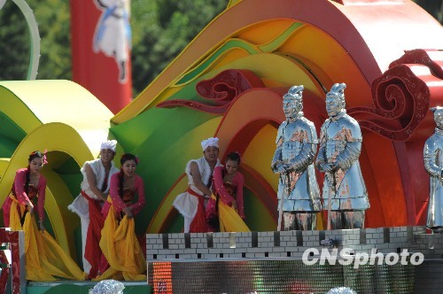 國(guó)慶慶典:陜西彩車亮相群眾游行隊(duì)伍