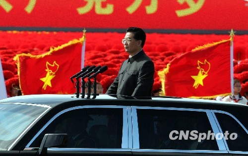 國(guó)慶閱兵:胡錦濤乘紅旗車閱兵