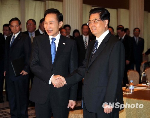 圖:胡錦濤會(huì)見(jiàn)韓國(guó)總統(tǒng)李明博