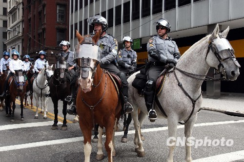 圖:匹茲堡街頭騎警護(hù)衛(wèi)峰會(huì)舉行