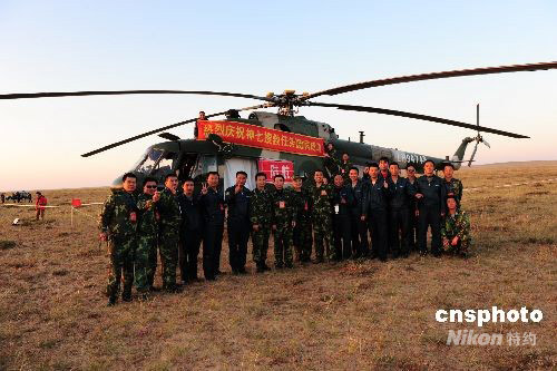圖:搜救隊(duì)員到達(dá)神七返回艙著陸現(xiàn)場(chǎng)