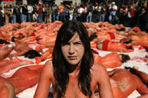 圖:動(dòng)物保護(hù)組織成員裸身抗議捕獵海豹
