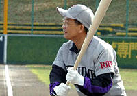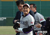 溫家寶總理興致勃勃地?fù)]棒擊球