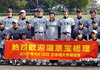 溫家寶與同場(chǎng)練球的大學(xué)生們合影