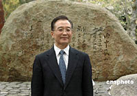 溫家寶在京都嵐山參觀周恩來(lái)詩(shī)碑