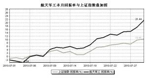 市場表現(xiàn):自7月2日以來,航天軍工行業(yè)漲幅達21.15%,昨日航天軍工股表現(xiàn)可圈可點,漲幅位居第一位。據(jù)《證券日報》與WIND數(shù)據(jù)統(tǒng)計顯示,航天軍工類股有79只,其中,3只停牌的股票。7月2日以來個股表現(xiàn)良好,漲幅超過20%的股票就有33只,占總數(shù)的43%,超過10%的股票有65只,占總數(shù)的86%,在這期間,沒有下跌的股票,漲幅超過30%的股票有10只,包括成飛集成、博云新材、航天機電、航天長峰、中航重機、中國嘉陵、成發(fā)科技、晉西車軸、洪都航空、天興儀表等個股。