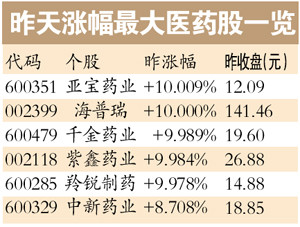 近日,國家工信部、衛(wèi)生部、國家食品藥品監(jiān)督管理局聯(lián)合發(fā)布《關于加快醫(yī)藥行業(yè)結(jié)構(gòu)調(diào)整的指導意見》,支持我國醫(yī)藥產(chǎn)業(yè)發(fā)展。并且對于對大型企業(yè)跨省(區(qū)、市)重組后的改擴項目優(yōu)先予以核準,在股票發(fā)行、企業(yè)債券、中期票據(jù)以及銀行貸款方面給予支持,從而提高整個行業(yè)的產(chǎn)業(yè)集中度,培養(yǎng)大型醫(yī)藥集團,提高醫(yī)藥產(chǎn)業(yè)集中度。受此消息影響,昨天醫(yī)藥板塊表現(xiàn)十分搶眼。
