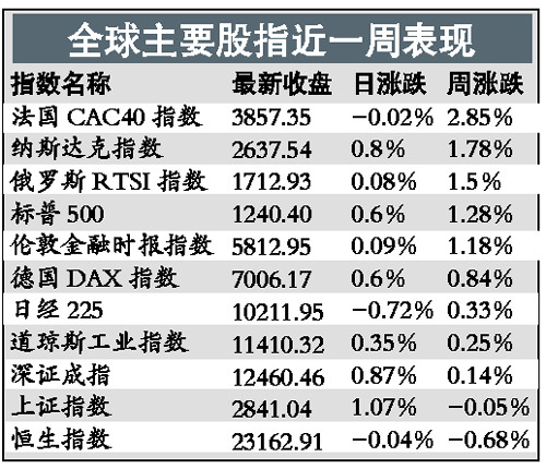 雖然中國(guó)A股近期萎靡不振,但其他多數(shù)股指表現(xiàn)搶眼,其中,受利好數(shù)據(jù)提振,美國(guó)道瓊斯指數(shù)上周五報(bào)收11410.32點(diǎn),上漲0.35%,且已經(jīng)實(shí)現(xiàn)連續(xù)兩周走高。其中,納斯達(dá)克收盤創(chuàng)下2007年12月以來(lái)的新高。而法國(guó)股市更是以2.85%的單周漲幅領(lǐng)漲全球股市。