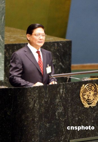 第六十二屆聯(lián)合國大會三十一日通過《奧林匹克休戰(zhàn)決議》。中共中央政治局委員、北京市委書記、北京奧組委主席劉淇在大會發(fā)言,呼吁通過體育和奧林匹克理想促進世界和平。中新社發(fā) 李靜 攝