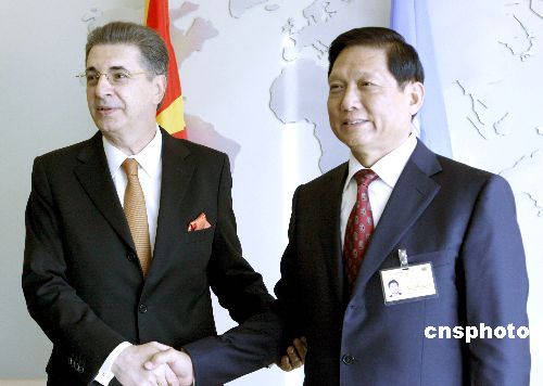 中共中央政治局委員、北京市委書記、北京奧組委主席劉淇三十一日在紐約聯(lián)合國會晤第六十二屆聯(lián)大主席克里姆。中新社發(fā) 李靜 攝
