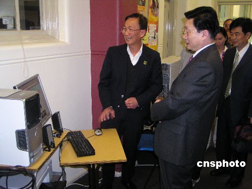 中國國務(wù)院僑務(wù)辦公室副主任馬儒沛(左二)十一月三日在悉尼參觀“雪梨中文學!。中新社發(fā) 葛明 攝